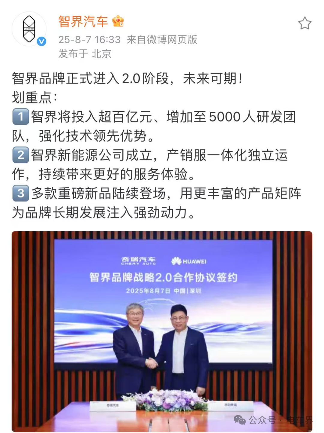 昨天,智界汽车宣布智界品牌正式进入2.0阶段。