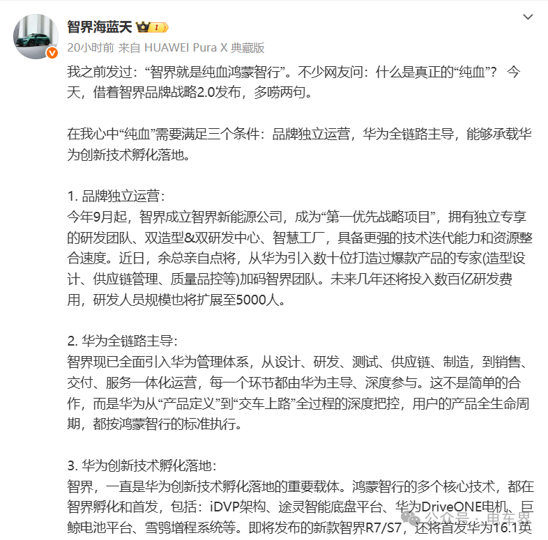 重磅!智界全面引入华为管理体系,余承东亲自点将